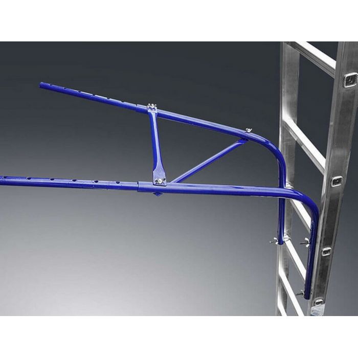 Профессиональная телескопическая опора от производителя Алюмет создана для надежной фиксации лестницы на оптимальном расстоянии от стены (53-84 см). Незаменима при работах, где мешают карнизные свесы и другие архитектурные элементы.