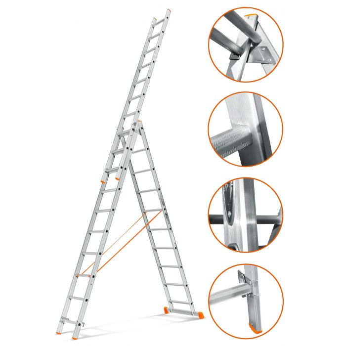 - Опора поперечной траверсы из полимера гарантирует устойчивость к износу и стабильность при различных температурах. Это делает лестницу идеальным выбором для использования в различных условиях, включая зимние работы.