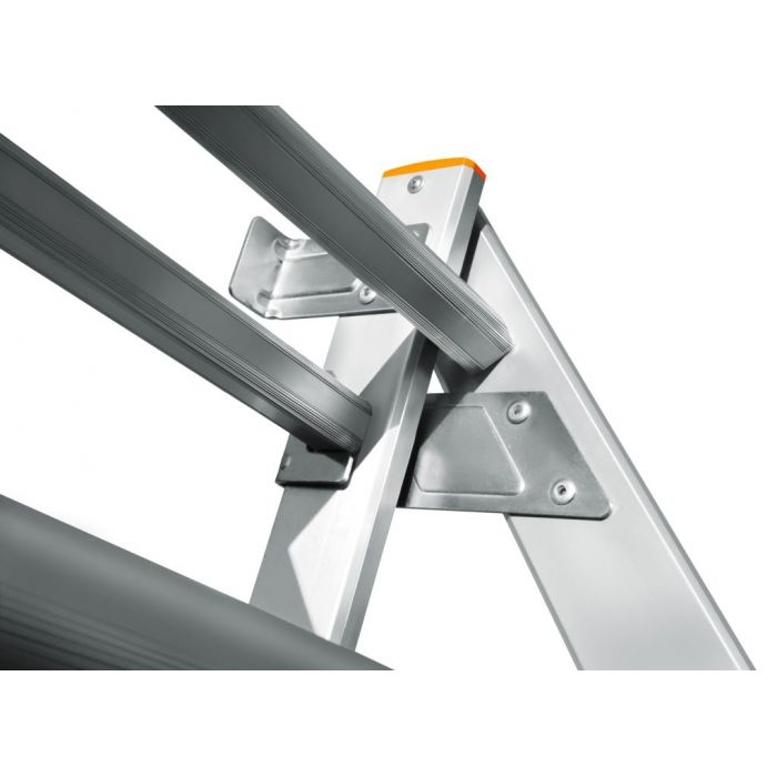 • Специальная конструкция верхних замков позволяет использовать лестницу даже на лестничных пролетах и при наличии перепадов высот. Это значительно расширяет область применения лестницы.