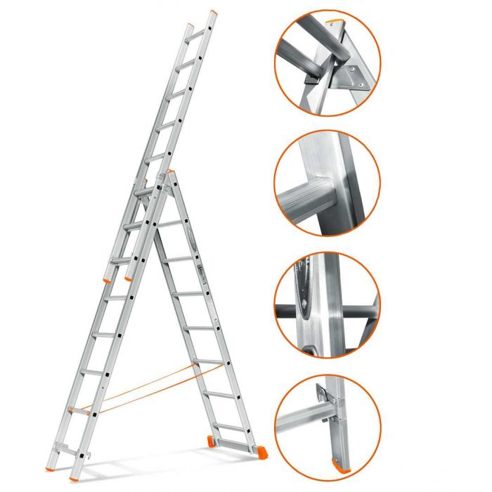 - Опора поперечной траверсы из полимера гарантирует устойчивость к износу и стабильность при различных температурах. Это делает лестницу идеальным выбором для использования в различных условиях, включая зимние работы.
