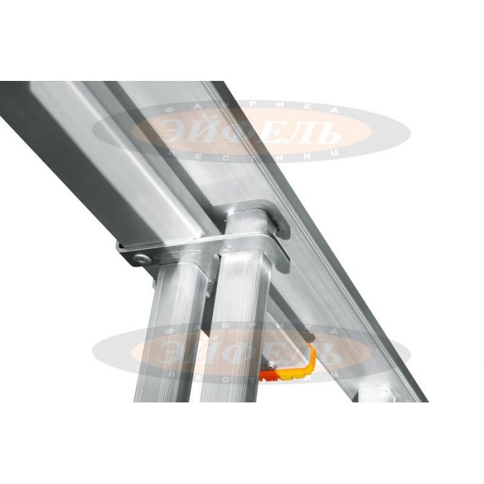 - Специальная конструкция верхних замков позволяет использовать лестницу даже на лестничных пролетах и при наличии перепадов высот. Это значительно расширяет область применения лестницы.