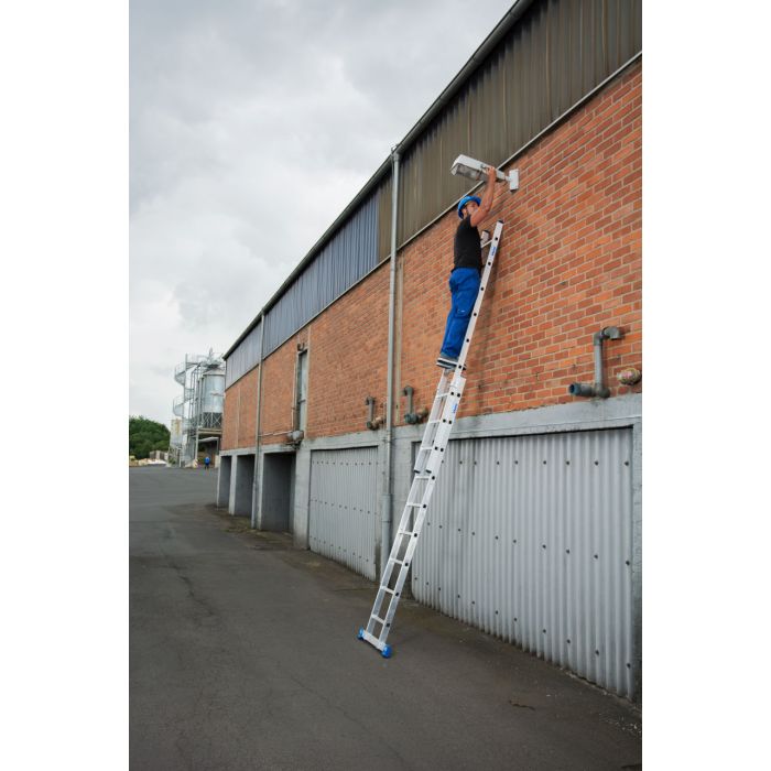 • Прочная двухсекционная алюминиевая лестница профессионального типа.