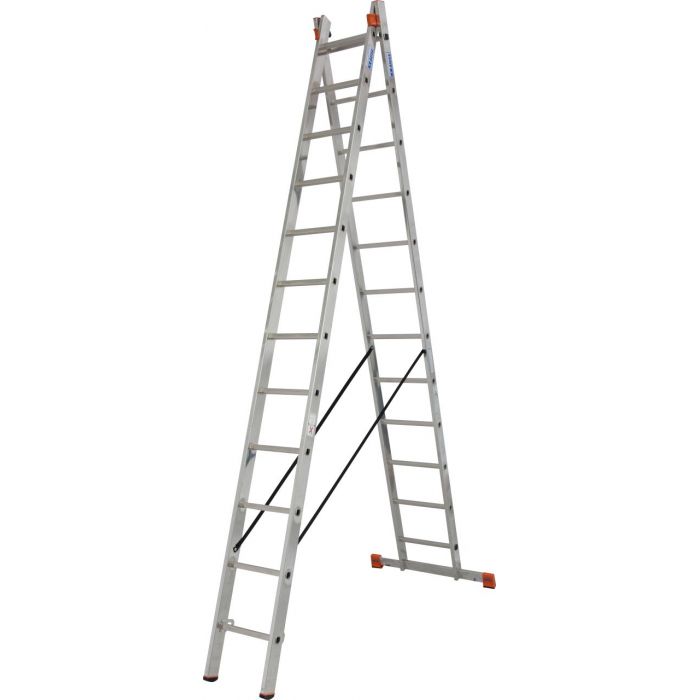 Универсальная стремянка с перекладинами, двухсекционная; может применятся как приставная, выдвижная лестница и свободностоящая стремянка