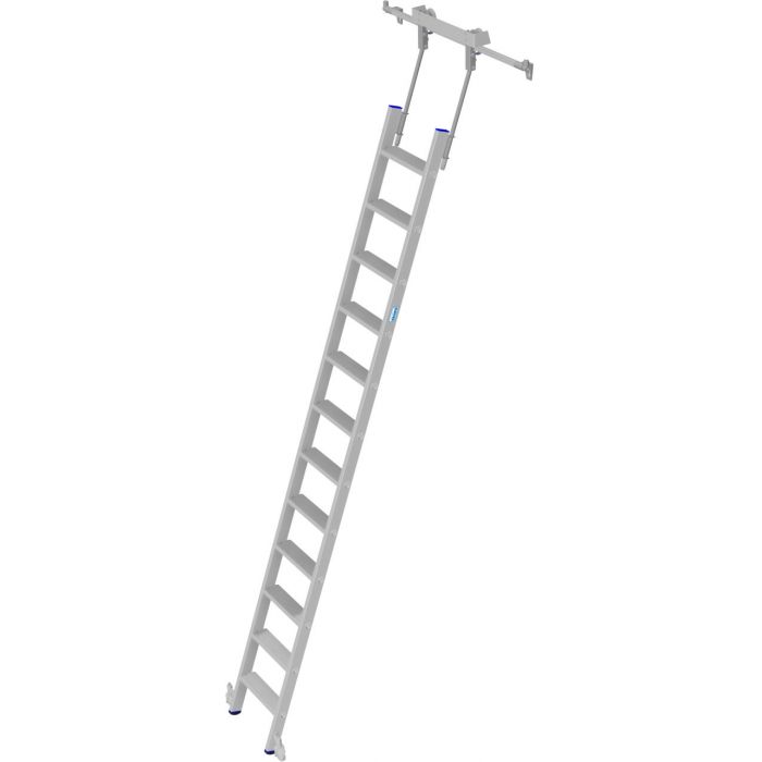 • Уклон лестницы 21°, в нерабочем положении вертикально приставляется к стеллажу
