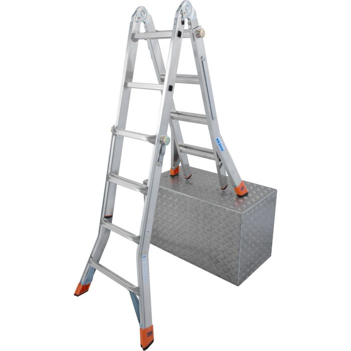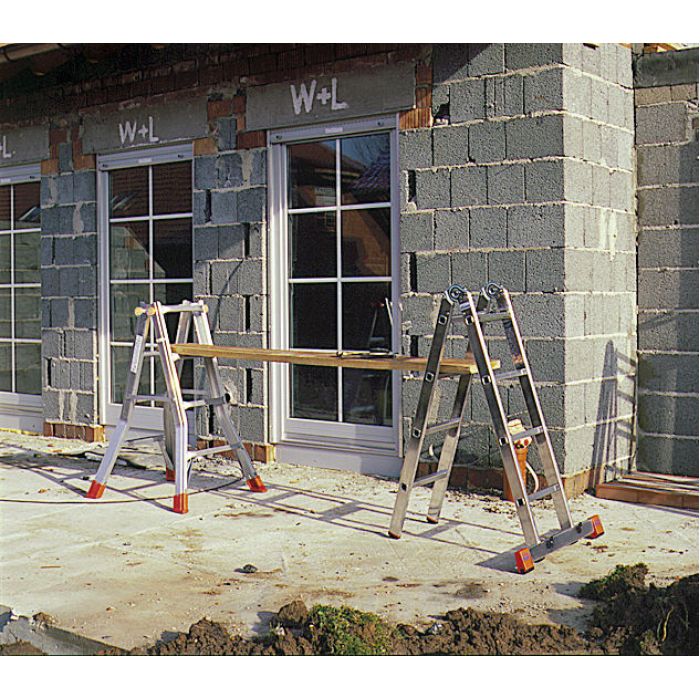 - Несколькими движениями руки из внутренней и наружной части стремянки можно создать отдельную двойную напольную стремянку, которую посредством бруса каменщика можно превратить в рабочий стол или рабочую подставку