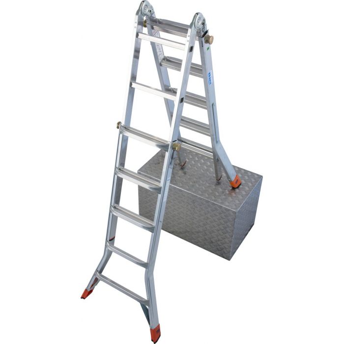 - Несколькими движениями руки из внутренней и наружной части стремянки можно создать отдельную двойную напольную стремянку, которую посредством бруса каменщика можно превратить в рабочий стол или рабочую подставку