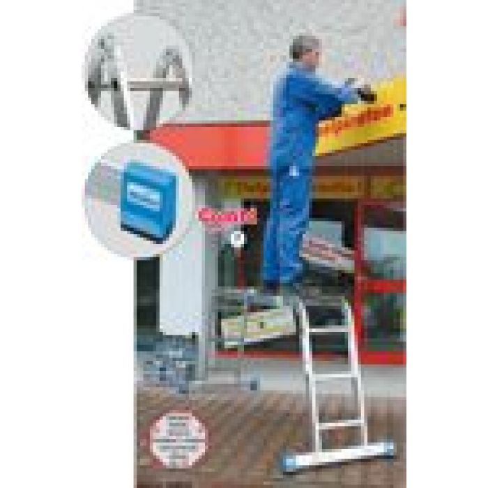 - Четырехсекционная универсальная алюминиевая шарнирная лестница: применяется как двусторонняя стремянка, как