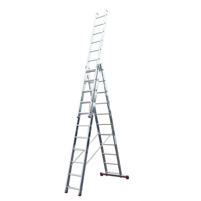 Трехсекционная алюминиевая лестница Krause Corda 3x11, предназначенна для широкого спектра задач. Она может использоваться как приставная, раздвижная лестница или стремянка, что делает ее идеальным инструментом для различных работ.