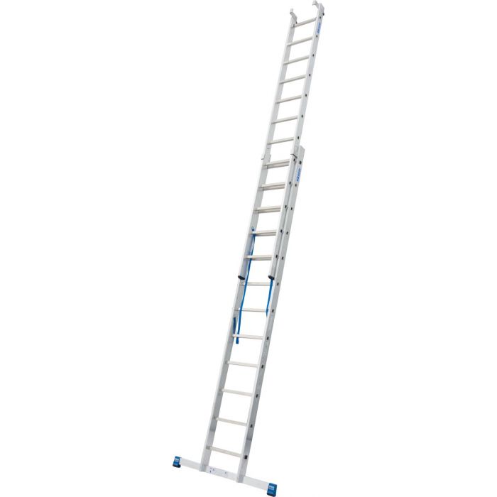 - Две алюминиевые планки дополнительно предотвращают самопроизвольное раздвижение или складывание секций лестницы при работе и фиксируются при транспортировке