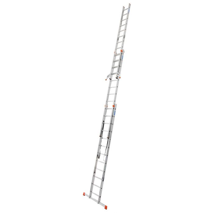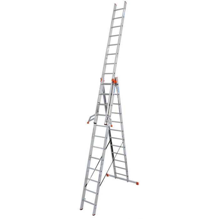 Универсальная лестница, трехсекционная; может применяться как приставная, выдвижная лестница и свободностоящая стремянка