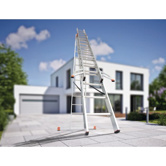 Универсальная лестница, трехсекционная; может применяться как приставная, выдвижная лестница и свободностоящая стремянка