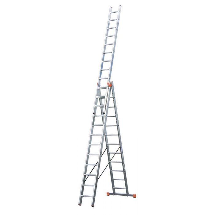 Универсальная лестница, трехсекционная; может применяться как приставная, выдвижная лестница и свободностоящая стремянка