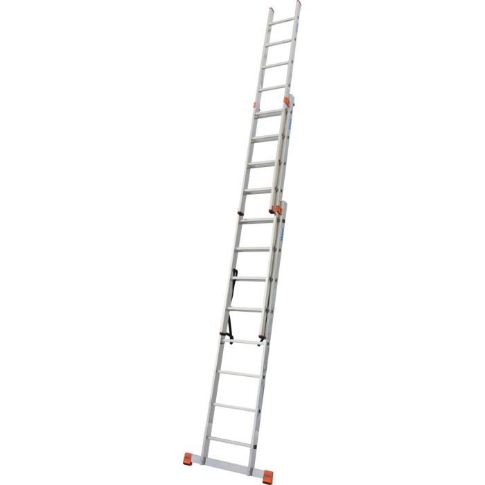 Универсальная лестница, трехсекционная; может применяться как приставная, выдвижная лестница и свободностоящая стремянка