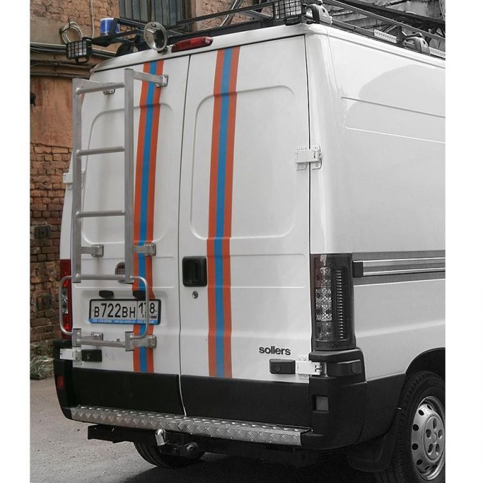 Легкая алюминиевая лестница ЛДА для доступа к верхнему багажнику автомобиля.