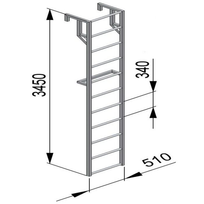 • Ступени из круглой рифленой трубы d30. Расстояние между ступенями -300 мм.