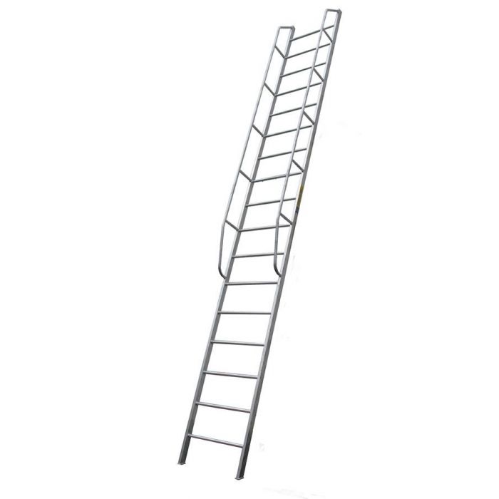 • Ступени выполнены из круглой рифленой трубы диматром 30 мм. сплава АД31Т1 шириной 750 мм., что обеспечивает безопасный спуск и подъем по лестнице