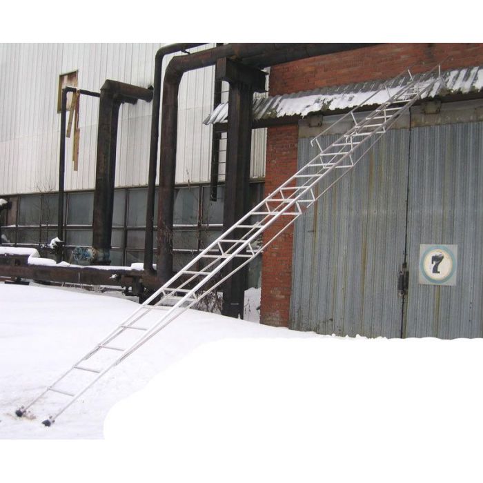 - Лестница приставная наклонная алюминиевая MEGAL-ЛПНА=1200-8.2 с поручнями предназначена для подъёма на рабочие горизонты, перехода между отдельными ярусами строящегося дома, выполнения небольших монтажных операций. Крепится на плиты перекрытия путем опирания, высота установки 8,2 метра, угол установки к горизонту -74?.