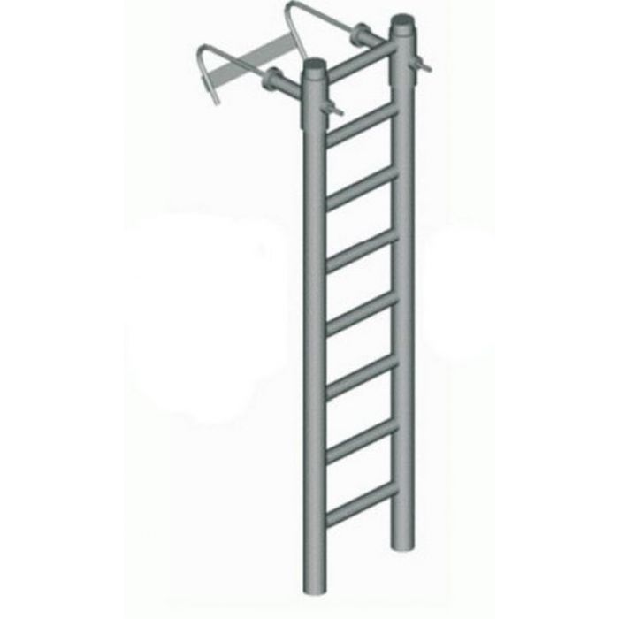 • Лестницы навесные алюминиевые с кронштейнами ЛНАстк-2,5 и ЛНАстк-4,0 изготовлены из профильной трубы 30х40. Ступени из круглой рифленой трубы d30. Допустимая нагрузка не более 1500Н (150 кгс).