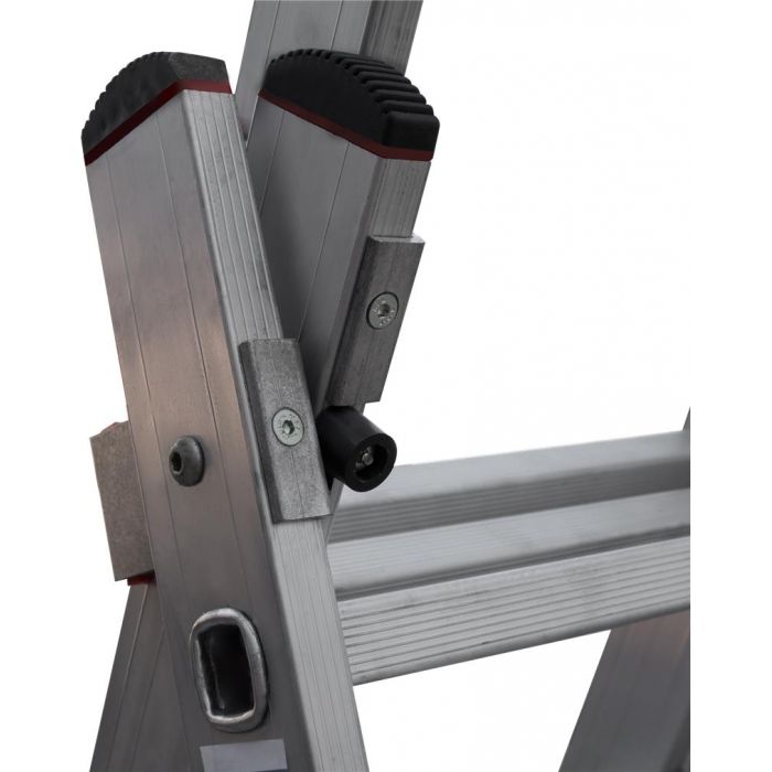 • Опорные наконечники стоек и траверсы из прочного двухкомпонентного пластика на заклёпках (жёсткий компонент отвечает за надёжность крепления. мягкий препятствует скольжению лестницы)