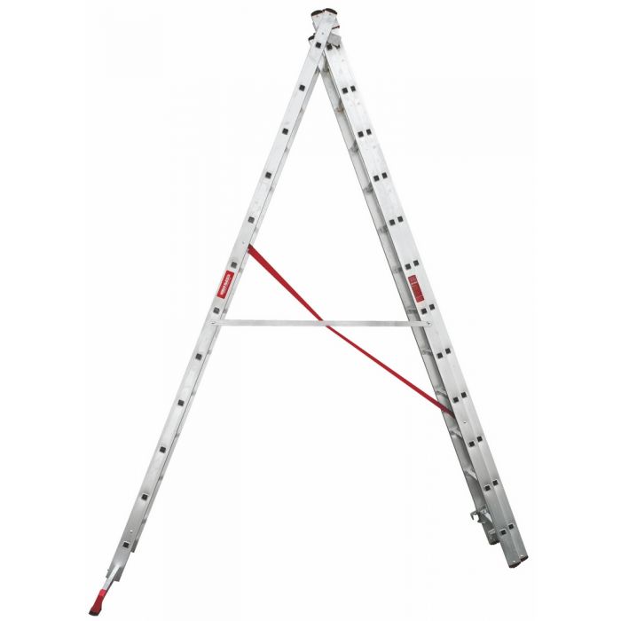 • Прочные страховочные стяжки из алюминия дополнительно предохраняют лестницу от самопроизвольного раскладывания.