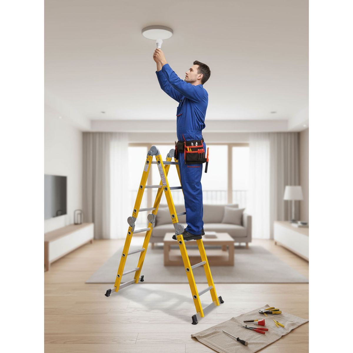 - Диэлектрическая лестница трансформер подойдет для монтажников, электриков.