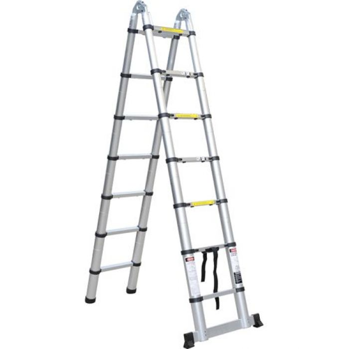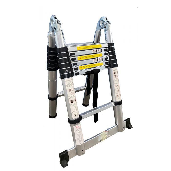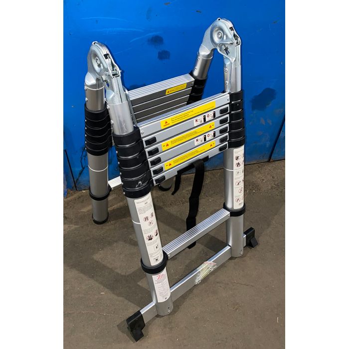 - Алюминиевая лестница используется как стремянка с двусторонним подъемом. Стальной шарнир фиксирует лестницу в двух положениях.