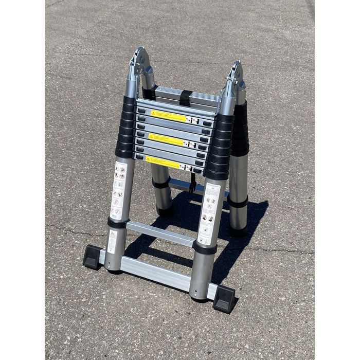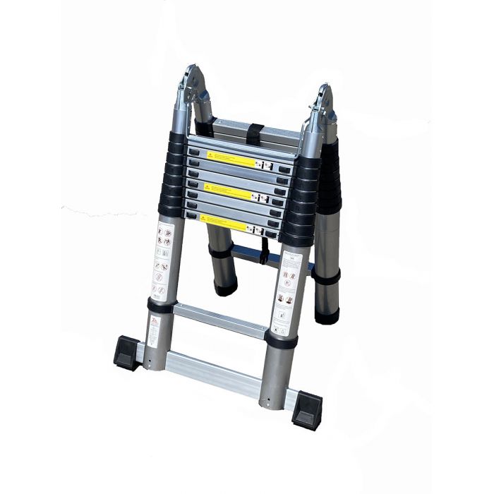 - Алюминиевая лестница используется как стремянка с двусторонним подъемом. Стальной шарнир фиксирует лестницу в двух положениях.