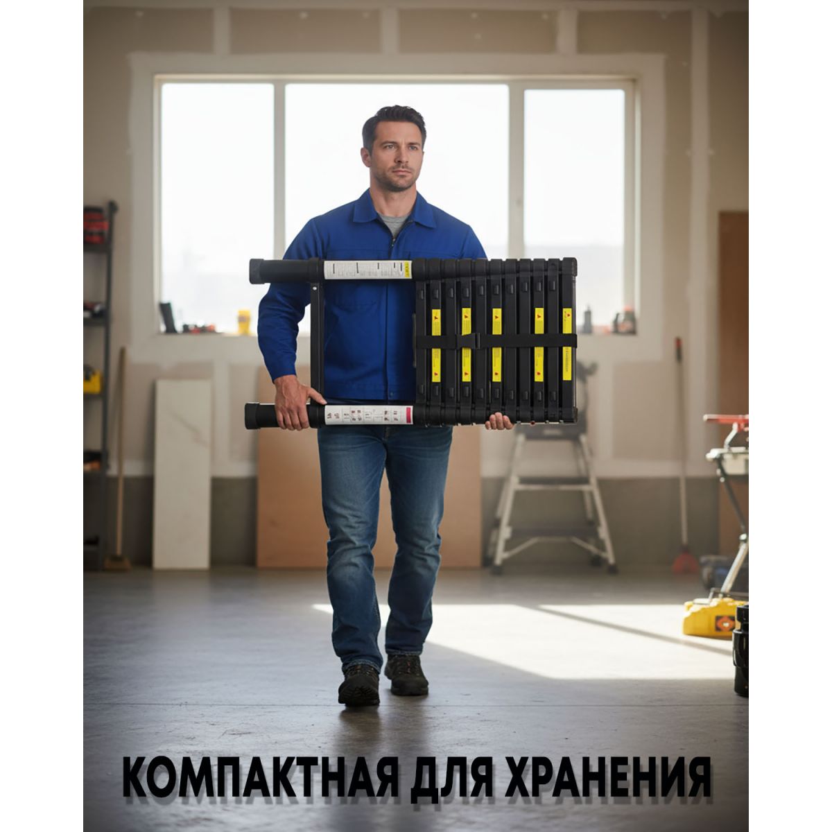 Лестница телескопическая SevenBerg AY-38 представляет собой инновационное решение для работы на высоте. Сочетая в себе удобство и безопасность, эта лестница является идеальным выбором для строительных, монтажных и других работ в бытовых условиях.