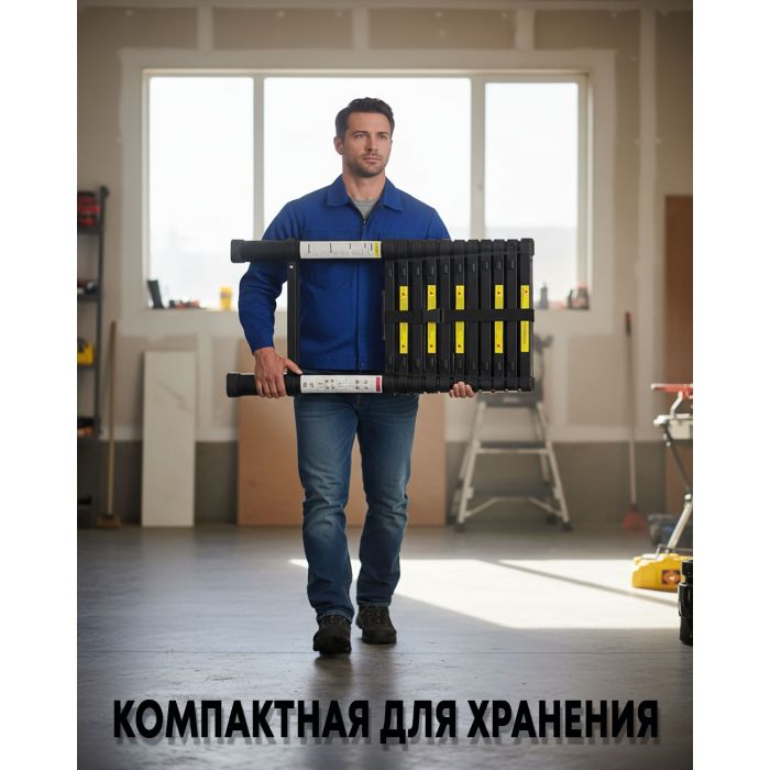 Лестница телескопическая SevenBerg AY-44 представляет собой инновационное решение для работы на высоте. Сочетая в себе удобство и безопасность, эта лестница является идеальным выбором для строительных, монтажных и других работ в бытовых условиях.