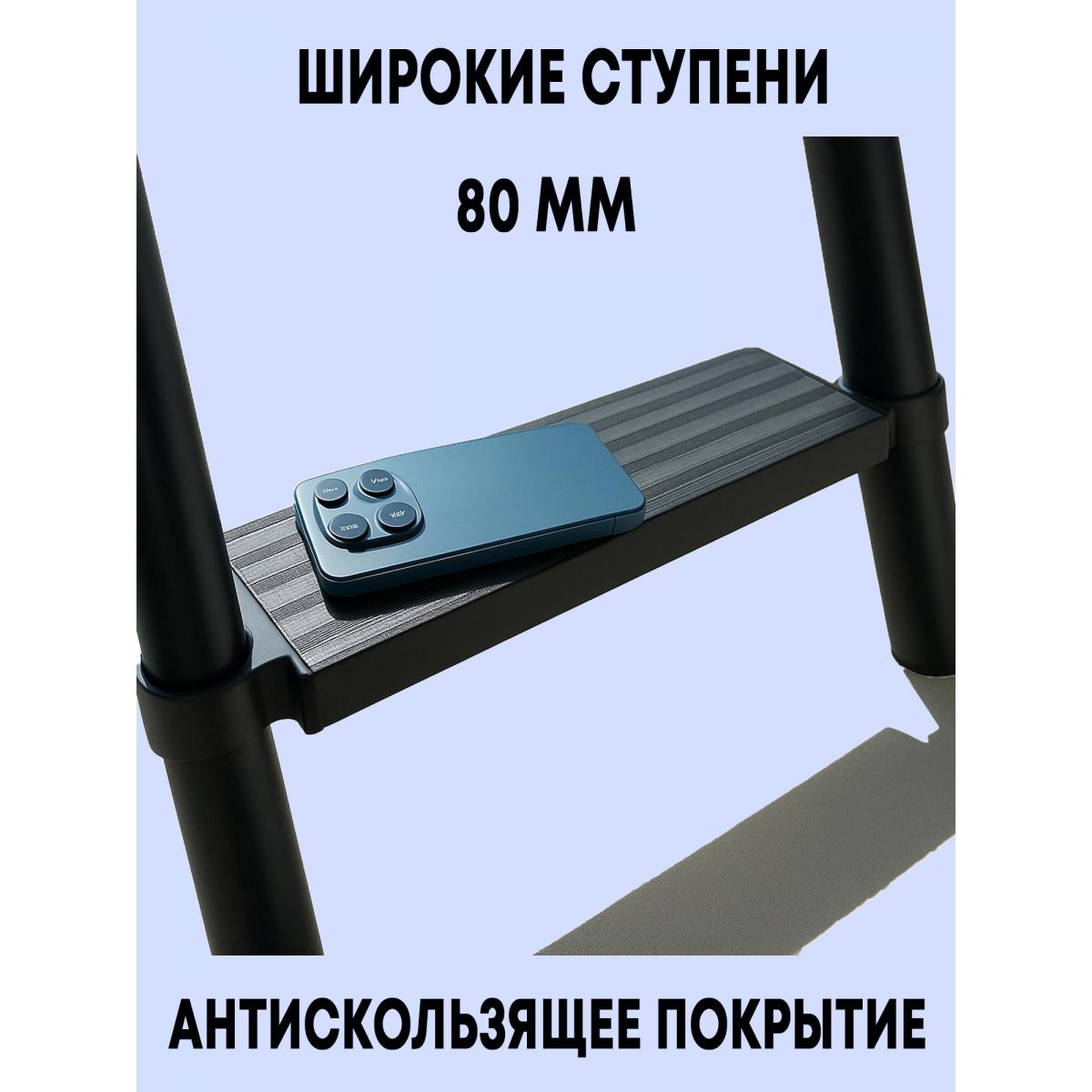 - Удобство использования: Разложить лестницу на необходимую длину и сложить обратно можно легко и быстро, нажав на два лепестка на ступенях.