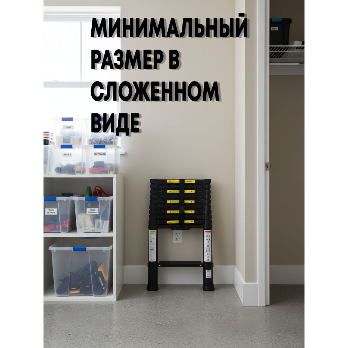• Принцип работы: Как и телескопическая удочка, лестница увеличивает свою длину за счет выдвижения секций.
