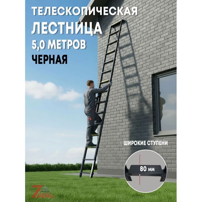 Лестница телескопическая SevenBerg AY-50 с широкими ступенями 5,0 м. чёрного цвета