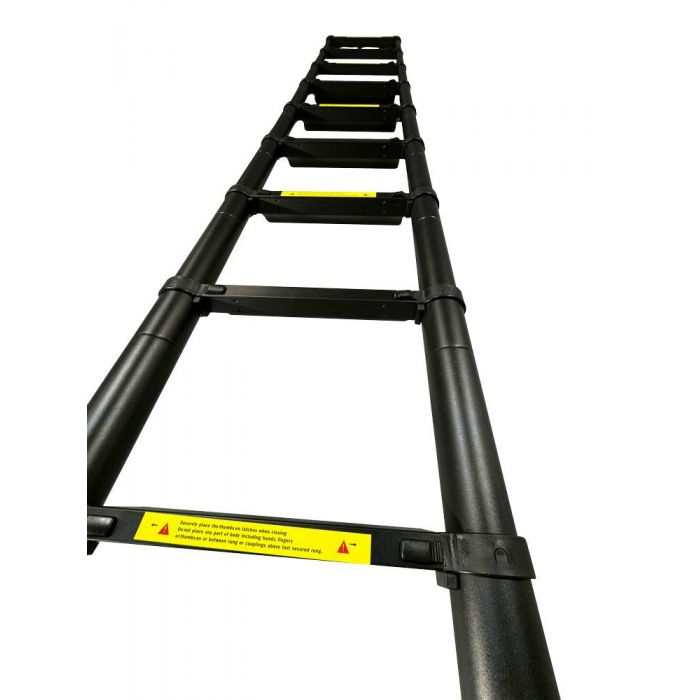- Вы можете разложить лестницу на любую длину с помощью удобного механизма фиксации ступеней, а также достаточно быстро разобрать её для транспортировки.