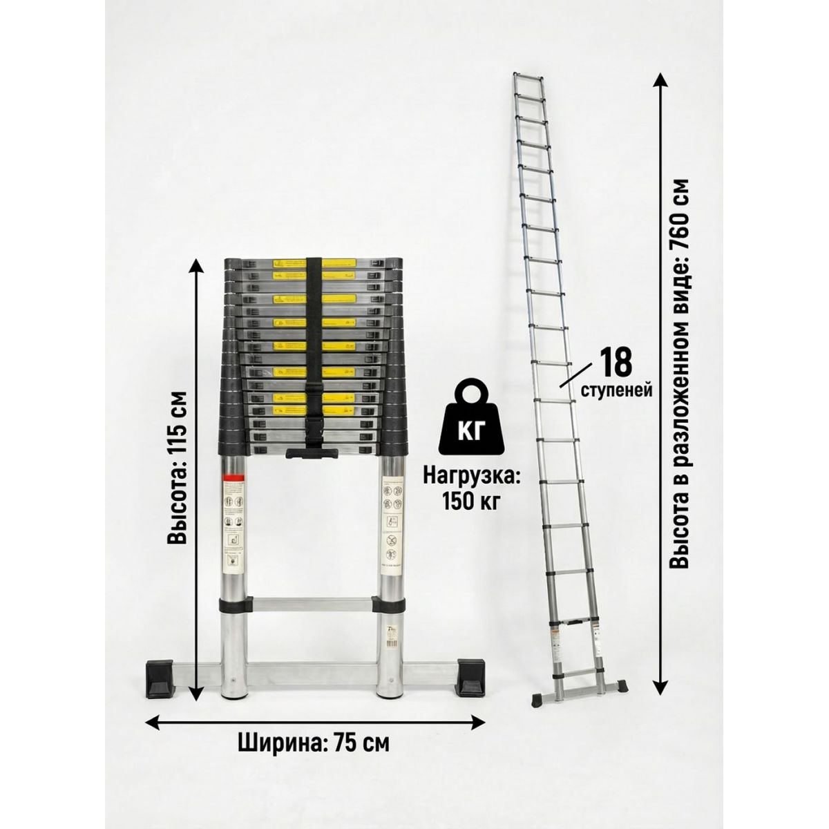 Обратите внимание: телескопическая конструкция обеспечивает непревзойденную компактность, но может иметь больший прогиб по сравнению с цельными лестницами, что является нормой для данного типа изделий.