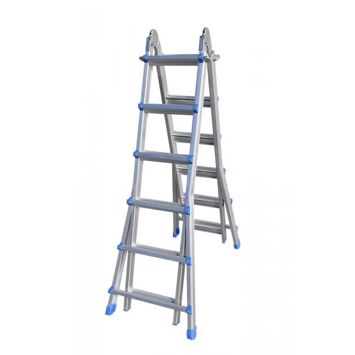 Телескопическая лестница 4 секции по 6 ступеней используется как приставная лестница или как стремянка.