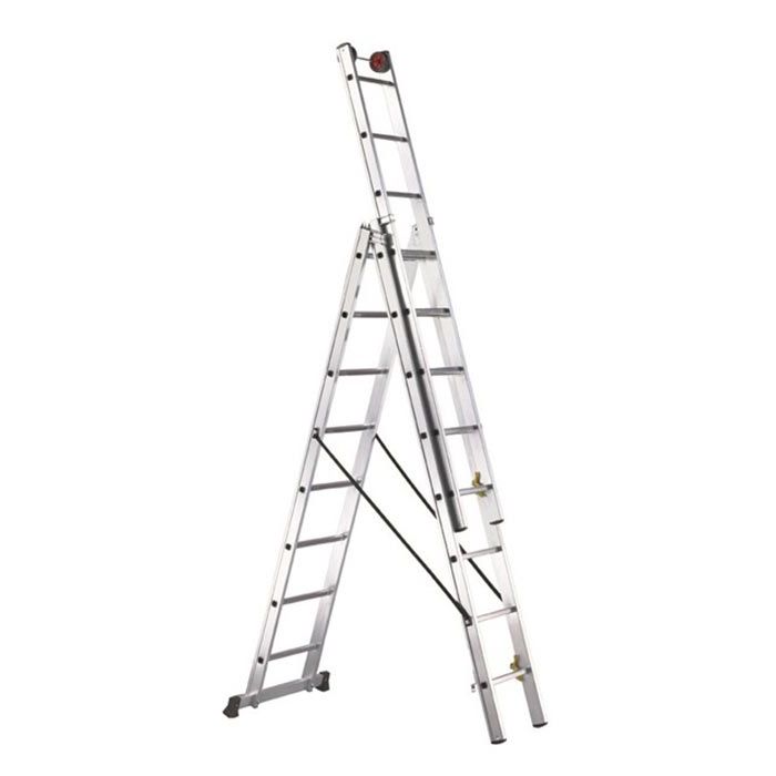 Трёхсекционная алюминиевая лестница Svelt Еuro E3 3x14, трансформируемая в стремянку, У-стремянку и приставную лестницу.