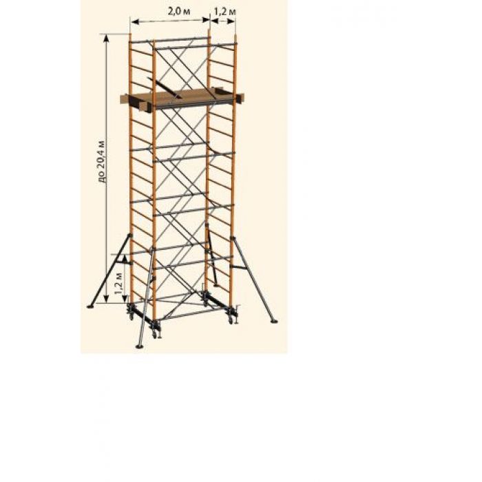 • Габариты рабочей площадки и размер в плане: 2 х 1.2 м.