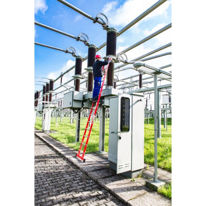 • Односекционная лестница с алюминиевыми перекладинами, стойки из 100% стекловолокна, для работ на электрических установках