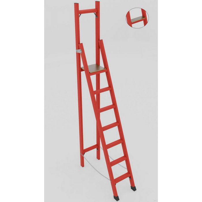 • При необходимости, в целях предупреждения падения стремянки от случайных толчков, место ее установки следует оградить или охранять.