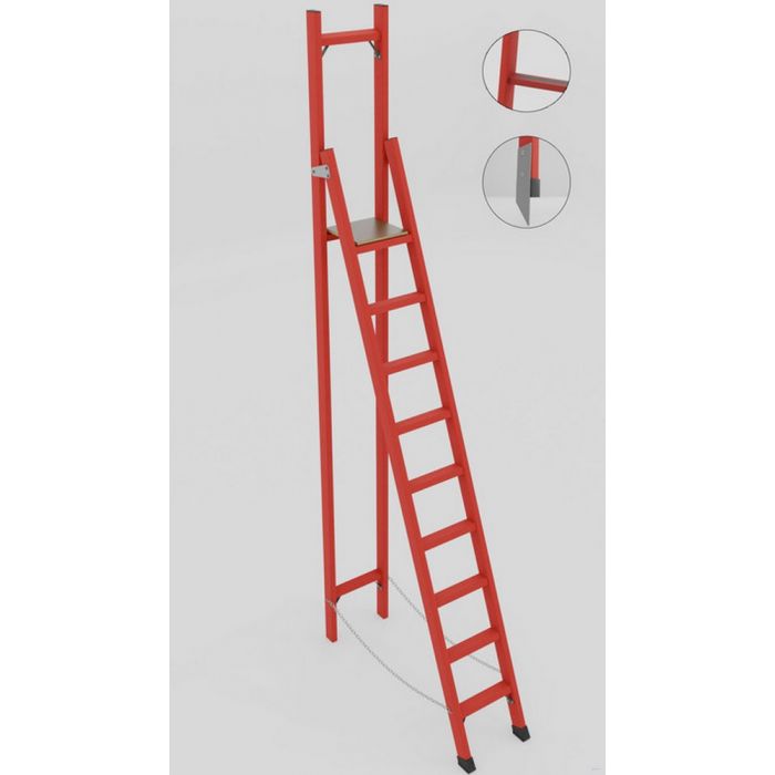 ССВ-3,1АТМ стремянка стеклопластиковая с вертикальной опорой, Телеком, абразивное покрытие ступеней, металлические оконцеватели (Мягкий грунт), h=3370мм, h рабочей площадки=2200мм, ступ.9