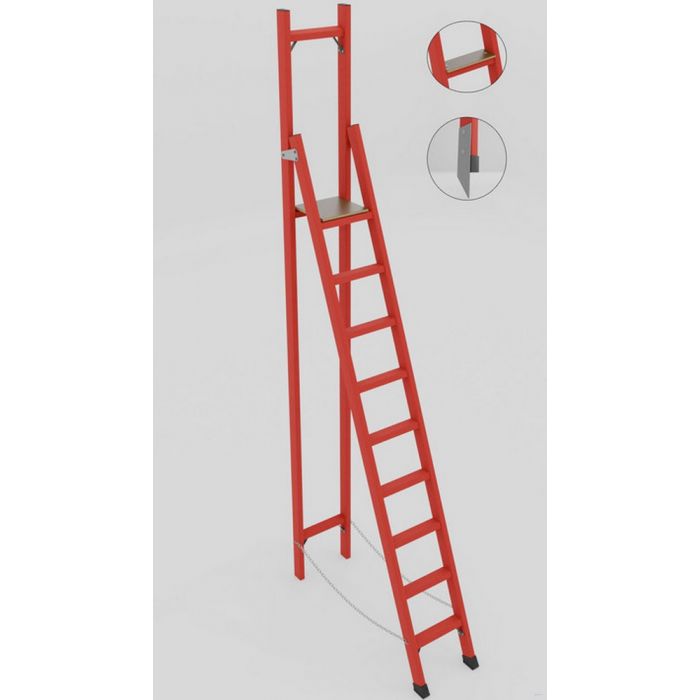 ССВ-3,6ШМ стремянка стеклопластиковая с вертикальной опорой, широкие ступени, металлические оконцеватели (Мягкий грунт), h=3930мм, h рабочей площадки=2800мм, ступ.9
