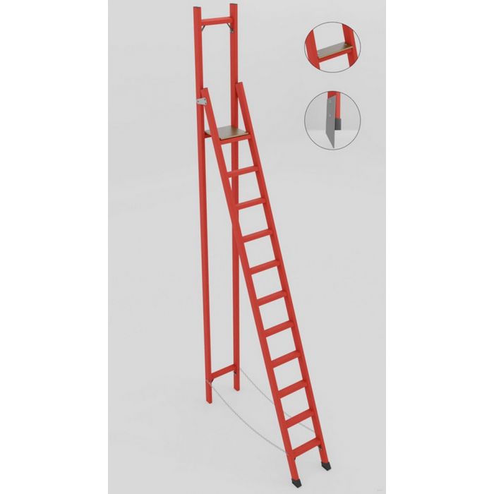 ССВ-3,6ТШМ стремянка стеклопластиковая с вертикальной опорой, Телеком, широкие ступени, металлические оконцеватели (Мягкий грунт), h=3870мм, h рабочей площадки=2600мм, ступ.11