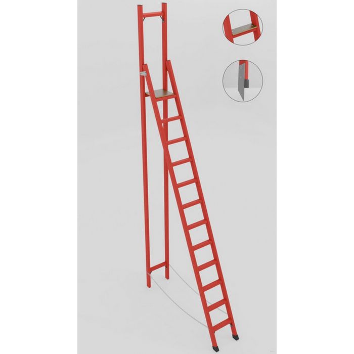 СВД-3,0ТШМ с вертикальной опорой диэлектрическая стеклопластиковая стремянка, Телеком, широкие ступени, металлические оконцеватели (Мягкий грунт), h=3950мм, h рабочей площадки=3000мм, ступ.12