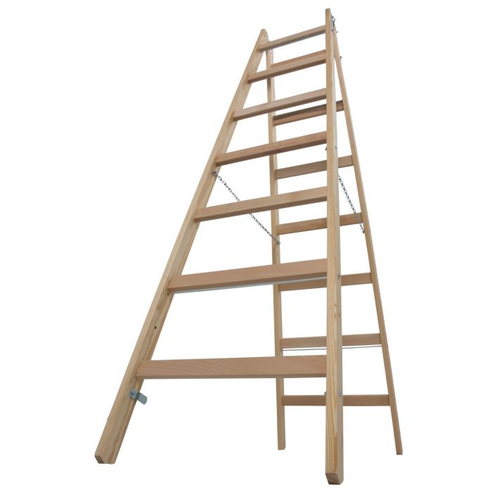 Двусторонняя стремянка Krause 2x7 с перекладинами (деревянная) 170279