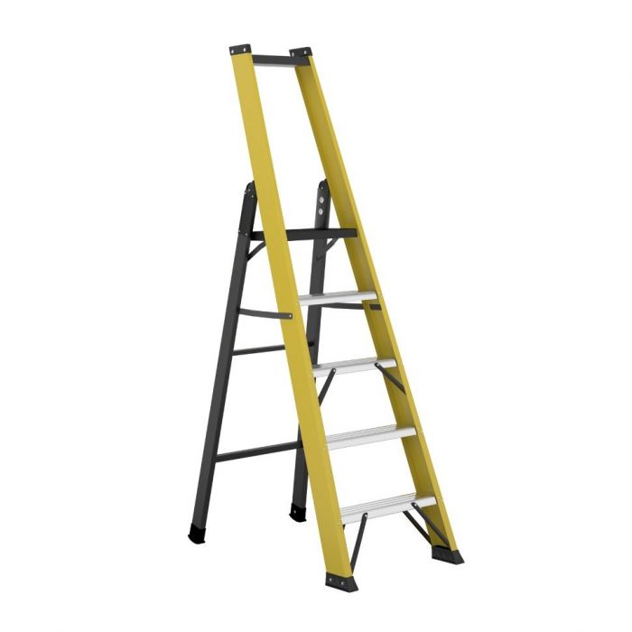 Диэлектрическая стремянка Svelt Smart-5 - Стремянка с односторонним подъёмом, платформой и стяжками, обеспечивающими безопасность фиксации