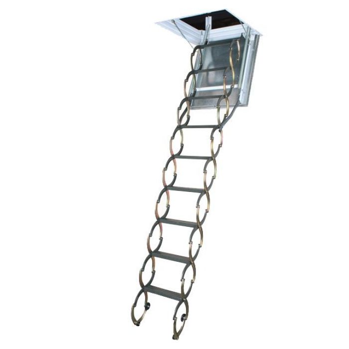 Огнестойкая металлическая лестница LSF может служить преградой распространению огня во время пожара. Имеет ножничную систему складывания и небольшой размер крышки люка.