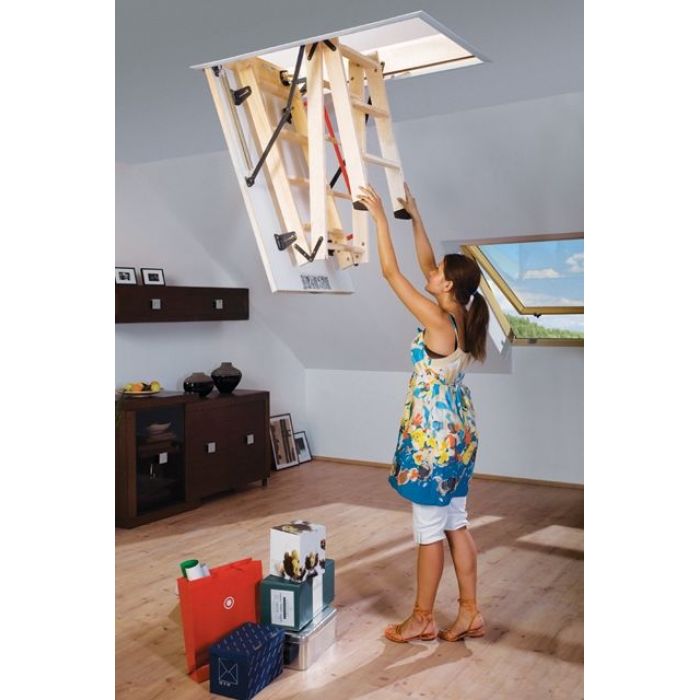 Чердачная лестница LWK отличается простотой и удобством монтажа - со стороны помещения, без подъема на чердак. Лестница устанавливается быстро, благодаря пластиковым креплениям-защелкам на крышке люка. Также лестница оборудуется стальной пластиной, за счет которой нагрузка переносится на лестничный марш, что гарантирует повышенную прочность и надежность. Кроме того, специальные крепления, управляющие движением крышки, отодвигают ее от лестничного марша во время открывания, увеличивая расстояние между ними, тем самым, повышая комфорт эксплуатации.