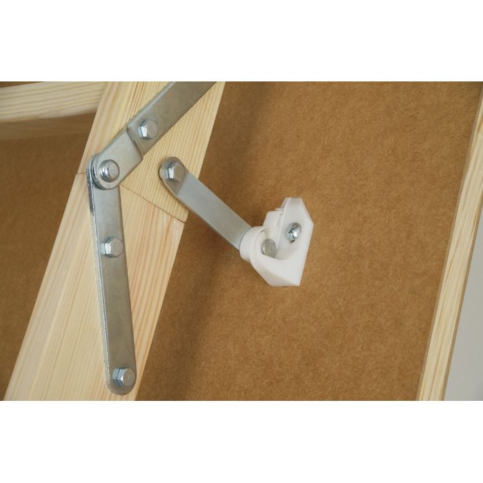 Крышка люка оборудована пластиковыми креплениями-защелками, которые позволяют быстро и легко закрепить ее после установки лестницы в проеме.