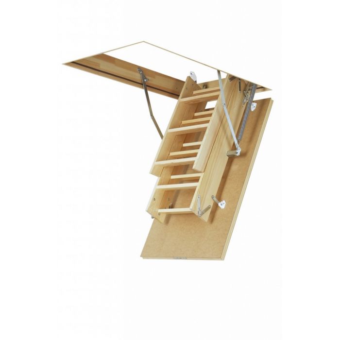 Чердачная лестница Fakro LWS 60х140х305 изготовлена из сосны, укомплектована утепленной крышкой люка (толщина крышки с утеплителем – 36 мм), облицованной ДВП