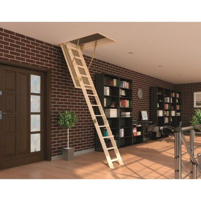 Деревянная чердачная лестница LWS Plus состоит из четырех секций, которые компактно складываются и «хранятся в потолке». Древесный цвет крышки люка идеально вписывается в потолок, обшитый вагонкой. Соединение тетивы боковых элементов и ступеней лестницы в крепление «ласточкин хвост» гарантирует надежность и прочность конструкции.